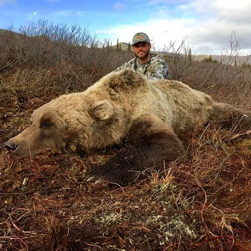 The Grizzly Bear is an apex predator in the Alaskan wilderness. The Grizzly population is growing in Alaska to such an extent that now the bag limit is 2 Bears a year. We utilize float planes, wheel planes, ski planes (Spring hunts), boats, and rafts on this spot and stalk hunt. Bears are hunted while feeding on Salmon along streams, on open hillsides covered in cranberries and blueberries, and in the Spring around dens.
