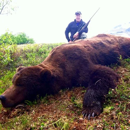 Alaska Peninsula Brown Bear hunting is one of the few hunts in the world where “the good old days” is now! Unit 9 (the Alaska Peninsula) has the highest Bear density on the planet. Hunts are spot and stalk and require more patience than physical ability. It is not uncommon for a client to see large numbers of bears on a 10-day hunt and to be very selective in targeting boars in the 9-10 foot range. These are the biggest bears in the world.
