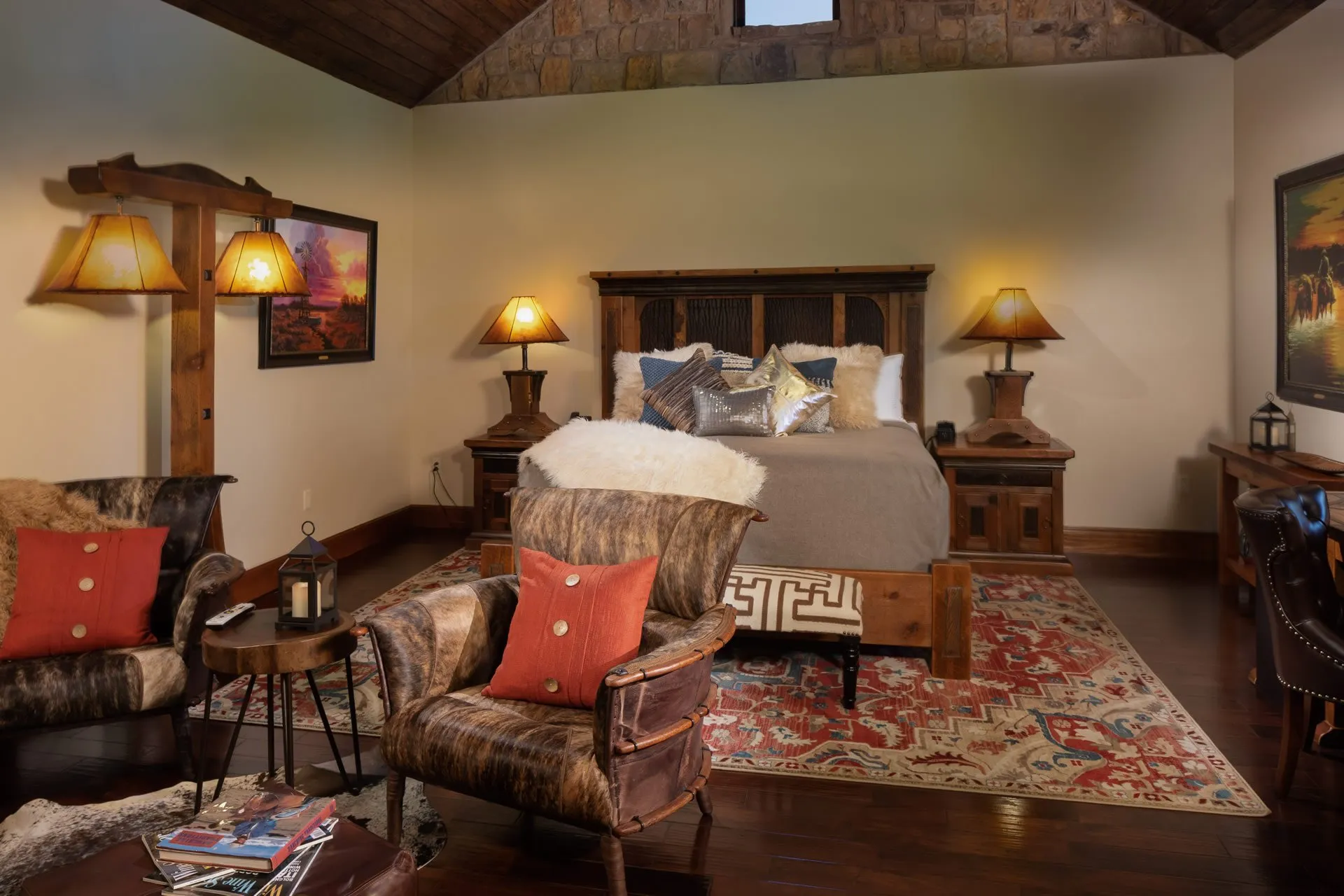 The ranch is a comfortable combination of ranch decor combined with a rich Texas flair. We have created a warm relaxing