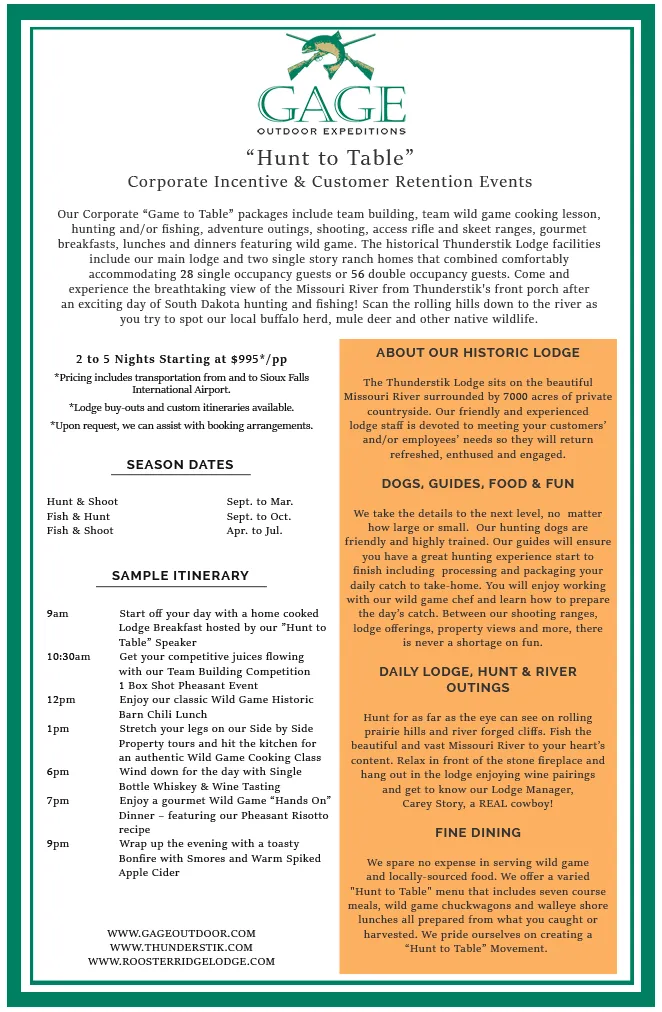 Corporate Incentive & Customer Retention Events“Hunt to Table” Corporate Incentive & Customer Retention Events