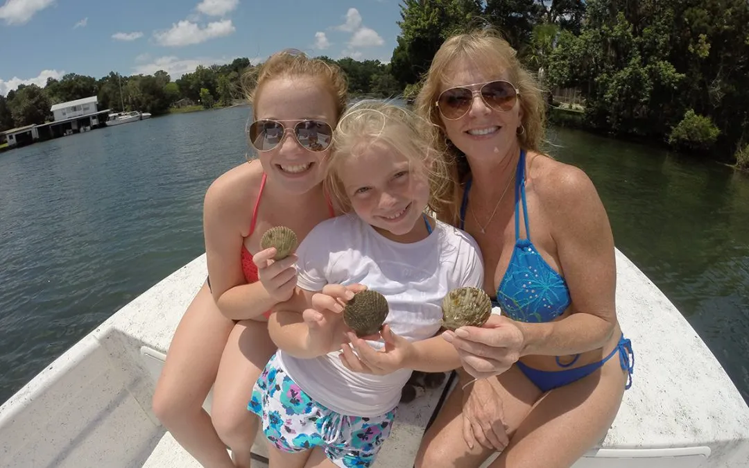 Remember, the water is only about 5 feet deep so you are not truly diving down too far, a simple snorkel mask with good visibility should do the trick. This, like the swimming with manatees, is a great family trip for almost all ages (family members should be at least 4 years of age) and a family of 4 or 5 is an ideal size to book a private trip for the Swim or the Scalloping.