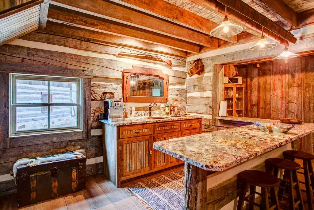 The Lodge has stone fireplaces, an antique bar and a game room that will keep you entertained for days!