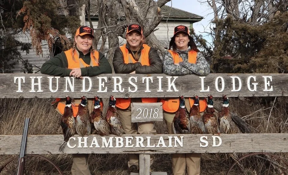 There is an atmosphere of support and personal service that makes it a great place for new hunters. The hunting was worldclass, dogs were on point and pheasants were falling out of the sky. We hunted hard all day and took our limit back to the lodge. Birds are breasted out and frozen for the trip home and they help you with taxidermy services. Thunderstik Lodge has way more to offer than just pheasant hunting; they are equipped with clay shooting, long range rifle shooting, pistol ranges and also offer walleye fishing trips. If there is an outdoor activity you would like to experience, they will do their best to make it happen. It’s not just a pheasant lodge, it’s an outdoor playground. The Sisterhood Seal Approval plaque will be hanging in the lodge. Look for it when you book your amazing South Dakota outdoor adventure with Thunderstik. And rest assured you will be taken seriously as a lady hunter.